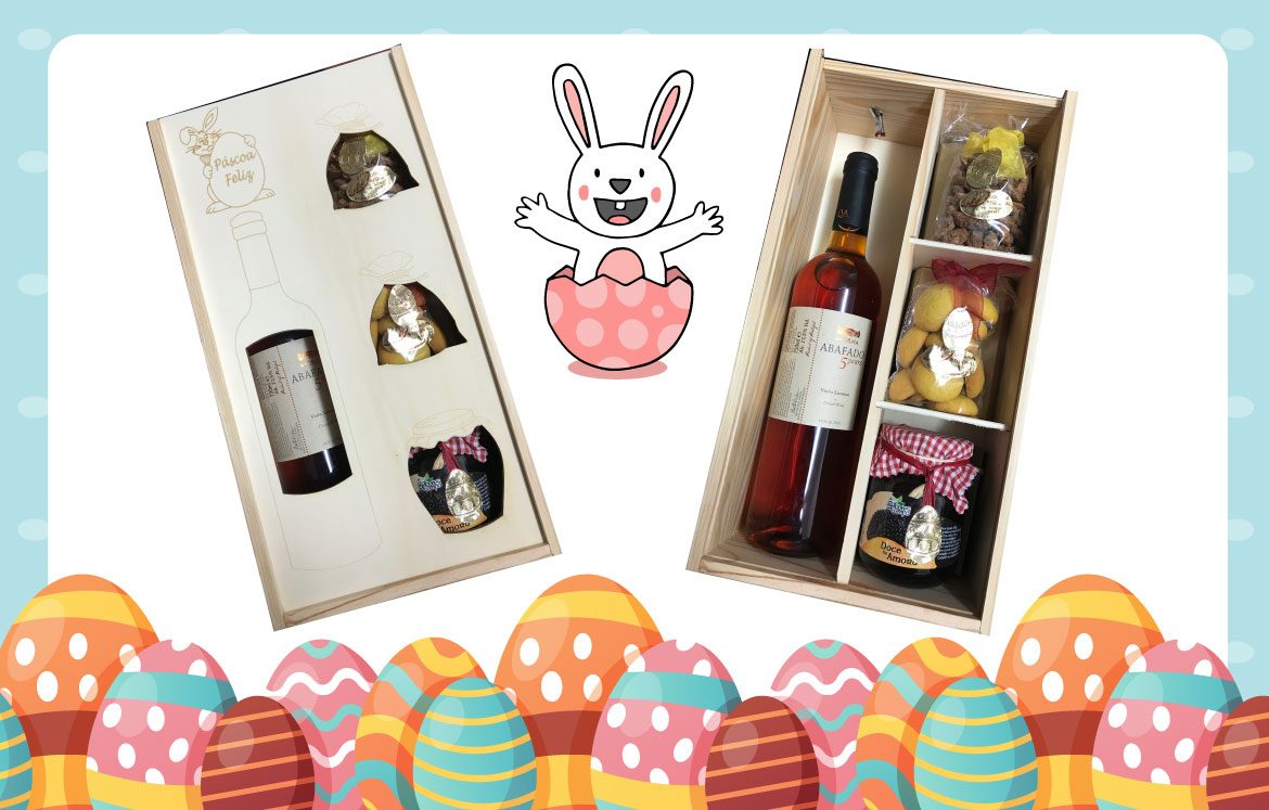 Caixa de Vinho Abafado personalizada e com produtos da época.